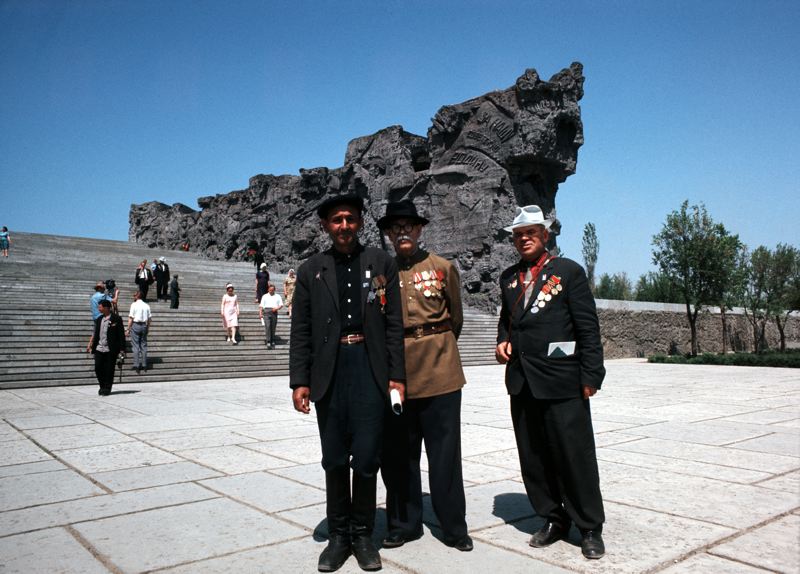 - Krigsmonumentet Mamajev Kurgan rest till minne över slaget vid Stalingrad, 200 trappsteg symboliserande de 200 dagar slaget om Stalingrad varade flankeras av skulpterade väggar. Framför trappan står tre dekorerade krigshjältar.