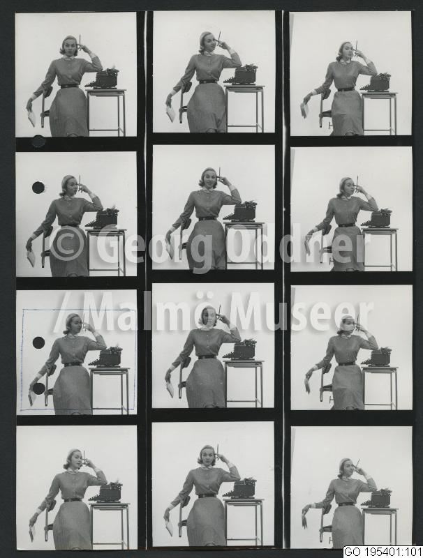 GO 195401:101 :: klädesprodukt, klänning, skrivmaskin
