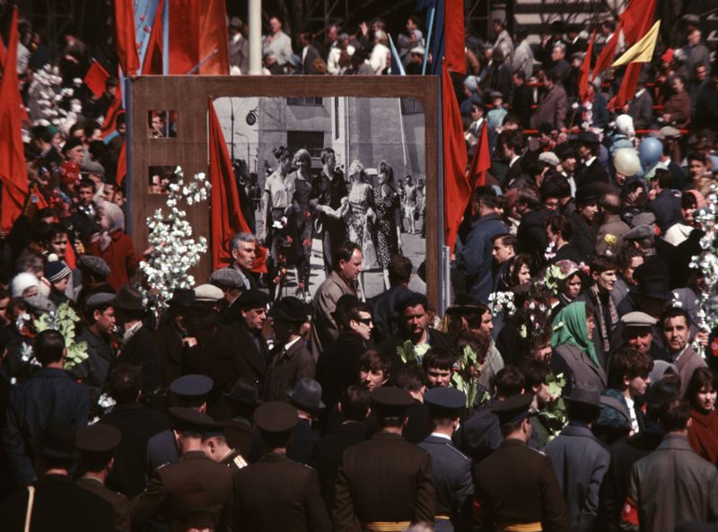 Stor folksamling, firande av högtid, militär i förgrunden.