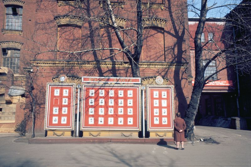 GOO 001417 :: kvinna, anslagstavla, fotografi