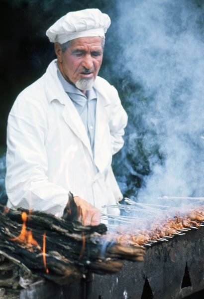 Uteservering, tillagning av grillspett.