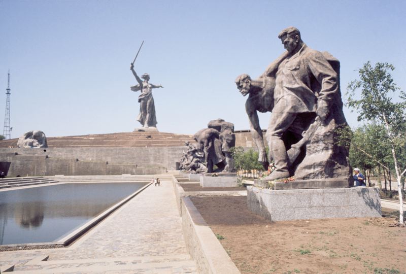 Krigsmonument i Stalingrad f.d. Volgograd, minnesmärke över slaget vid Stalingrad beläget på en höjd kallad Mamayev Kurgan kvinnostatyn kallas Rodina Mat Sovyot och är 84 m hög.