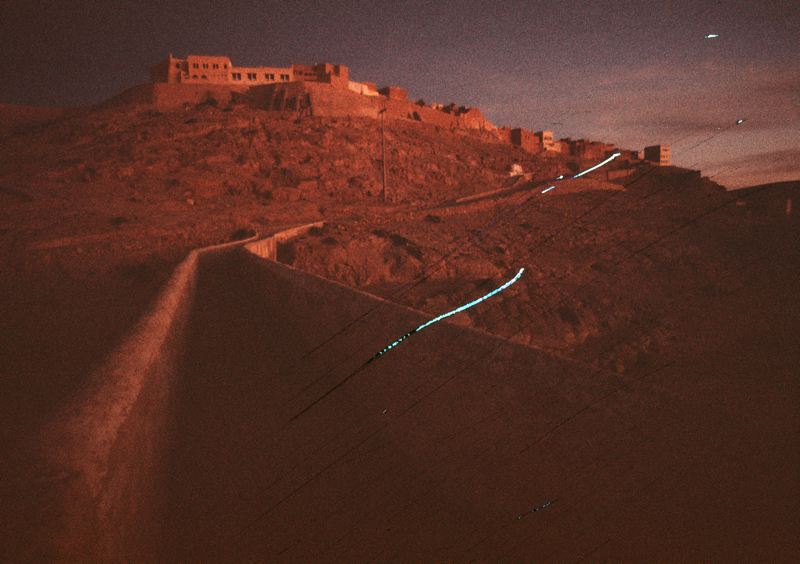 Murkantad gångväg leder upp till stad som ligger på toppen av berget.