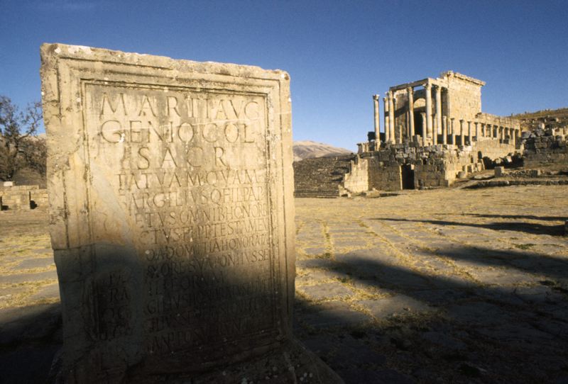 Djemila (Cuicul) romersk ruinstad med bl.a. Septimius Severus tempel som syns på bilden, finns sedan 1982 på UNESCO:s världsarvslista.