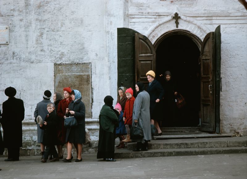 GOO 001857 :: man, kvinna, barn, kyrka, dörr