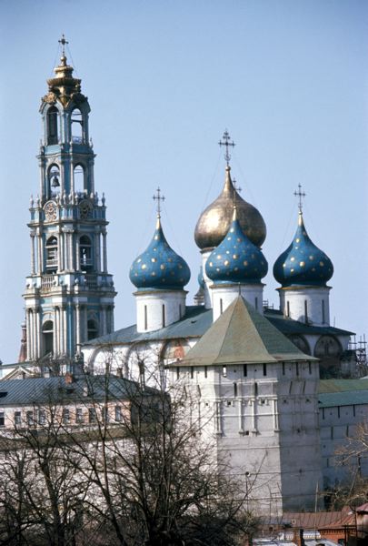 Assumption Cathedral med klocktorn i Trefaldighetsklostret (Trefaldighetens Sergius lavra) i Sergijev Posad. Världsarv sedan 1993.