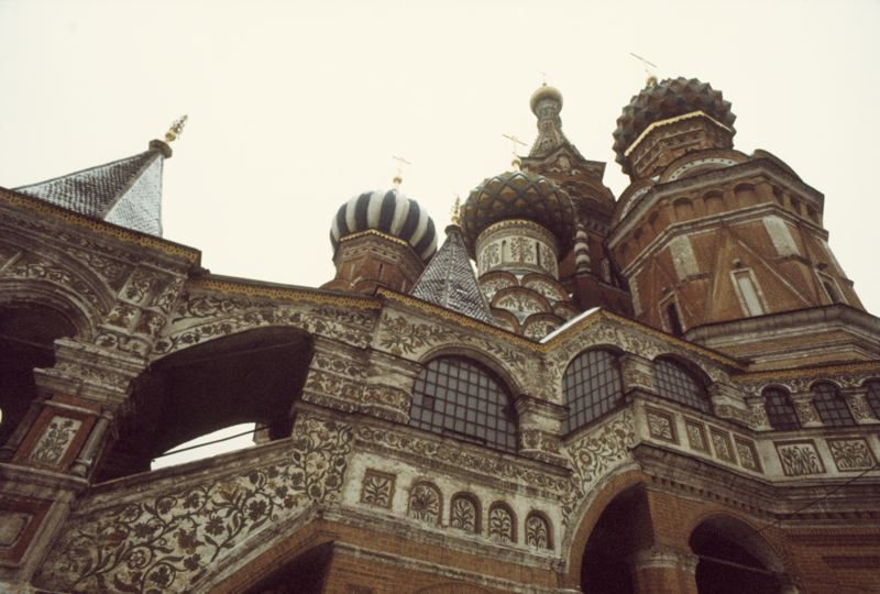 Vassilij-Katedralen. På bilden syns dekorationsmålningar på fasaden och kupoler.