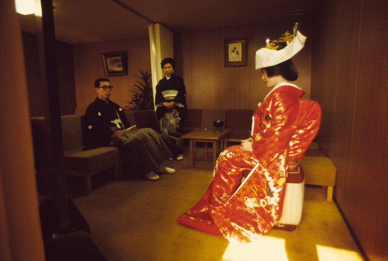 Man och kvinna klädda i japansk traditionell klädsel, antagligen ett brudpar.