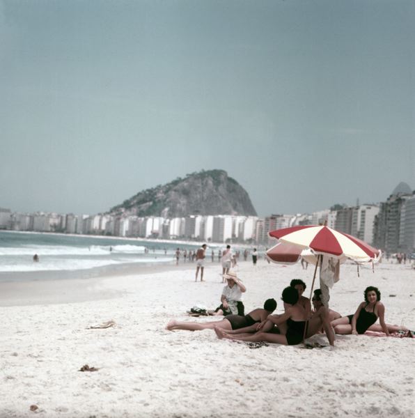 Stadsbebyggelse, människor på stranden i Copacabana.