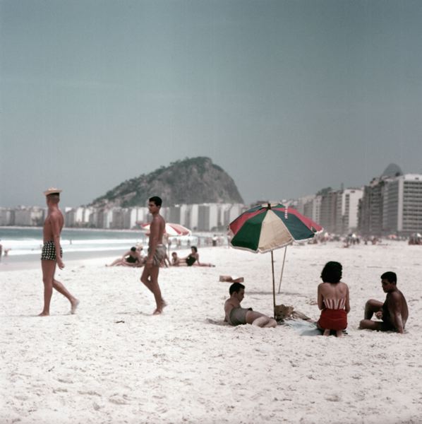 Stadsbebyggelse, människor på Copacabanastranden.