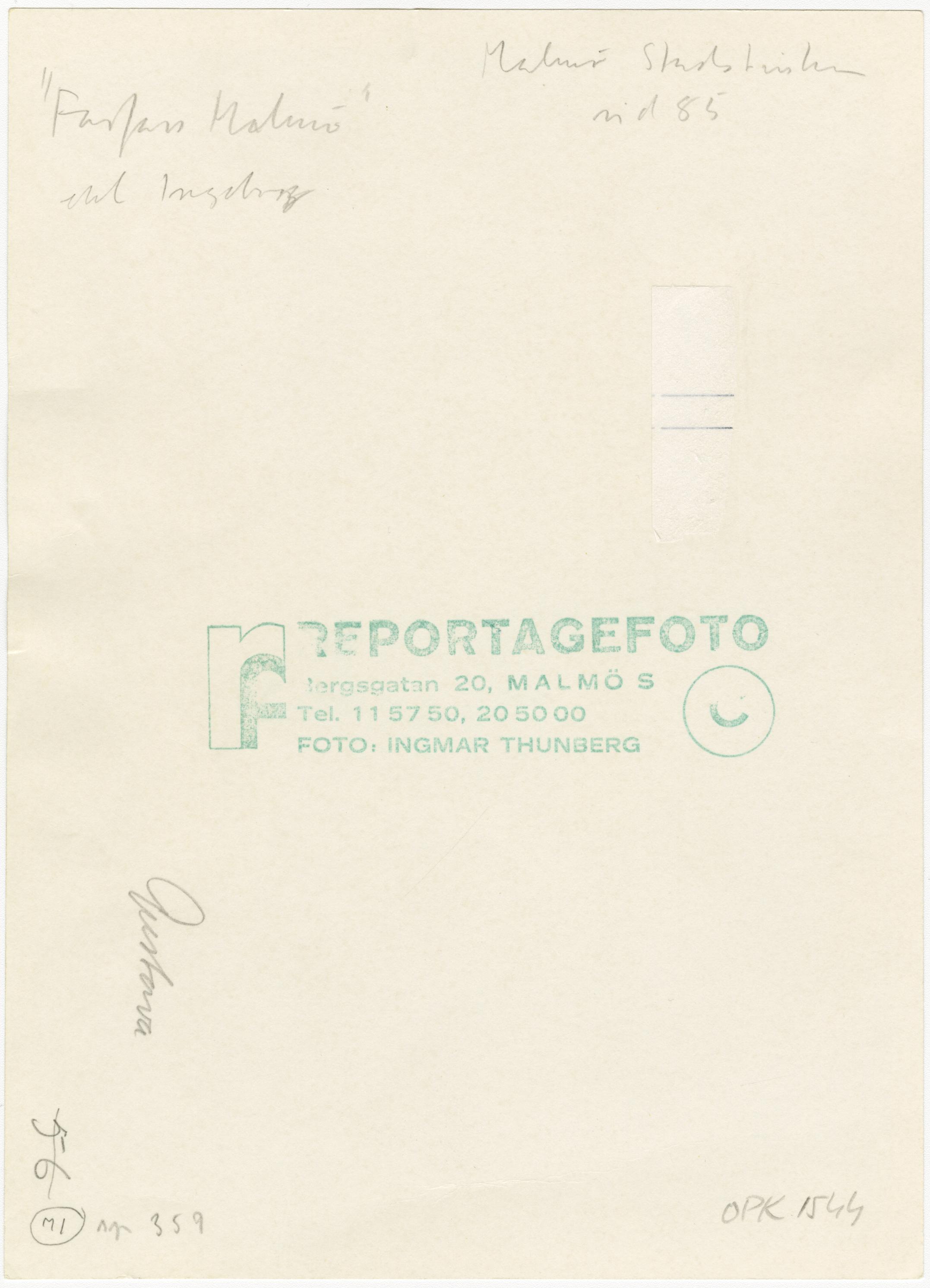 Bidrag till "Farfars Malmö". Restuscheringen förmodligen gjord vid reprotillfället. Repro av Reportagefoto, Ingmar Thunberg.