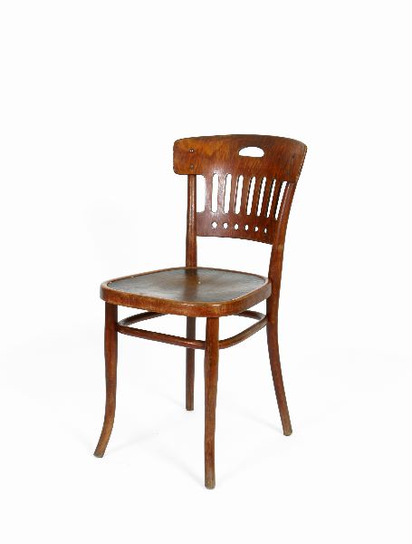 Nio stycken böjträstolar i mörk bok i jugendstil. Sitsen med linjedekor. Ryggstöd med genombruten dekor (runda och avlånga hål samt upptill halcirkelformat urtag. Ryggstödet påskruvat det bakre benparets fölängning.