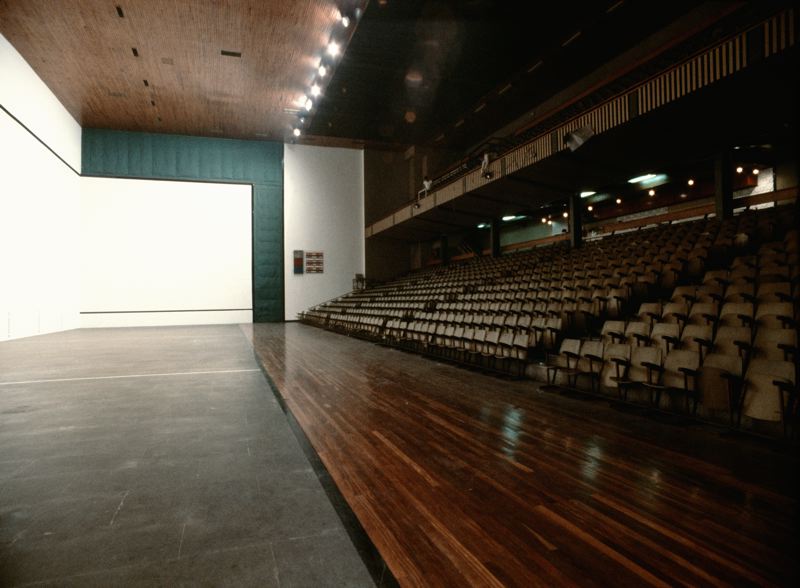 Sporthall med läktare och poängtavla avsedd för pelota.