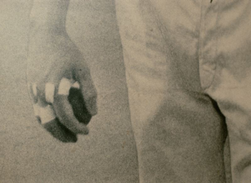 Del av kroppen och handen på pelotaspelare.