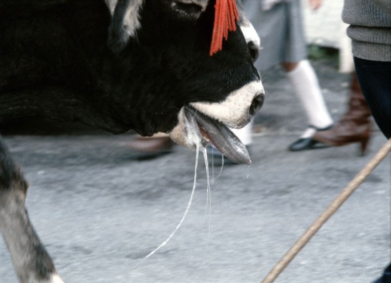 Huvudet på en oxe använd som dragdjur.
