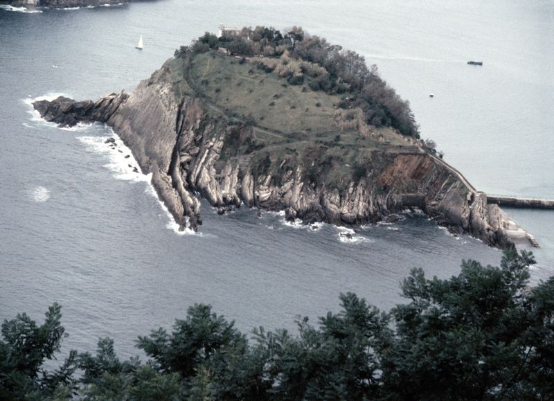 Ö med fyr belägen mitt i sundet mellan fastlandet.