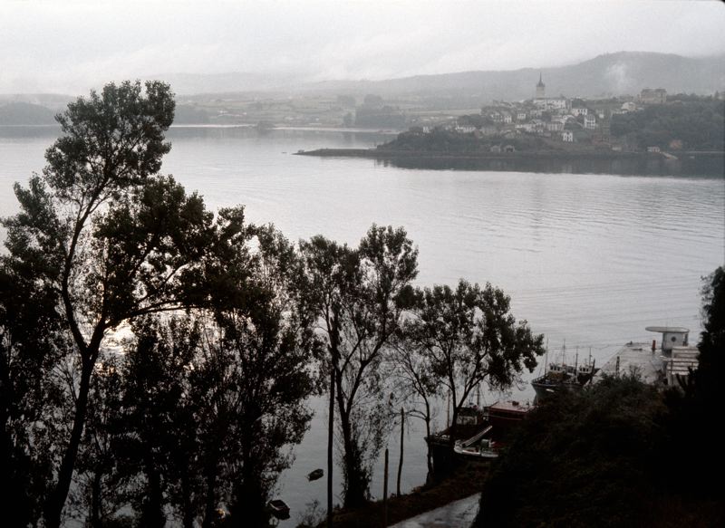 GOO 003448 :: bybebyggelse, hamn, båt, berg, träd
