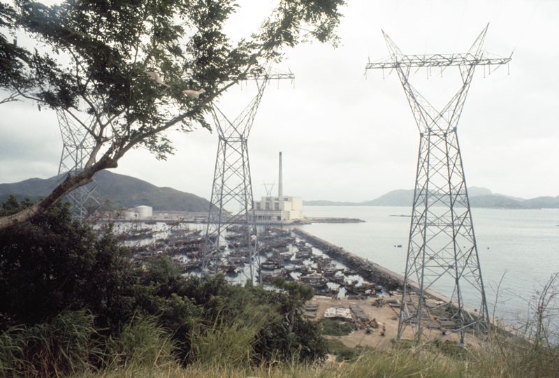 GOO 003637 :: hamn, båt, kraftledning, berg
