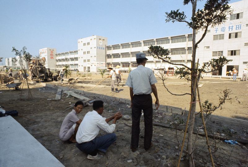 GOO 003694 :: trädgårdsskötsel, trädgårdsarbetare, betongblandare