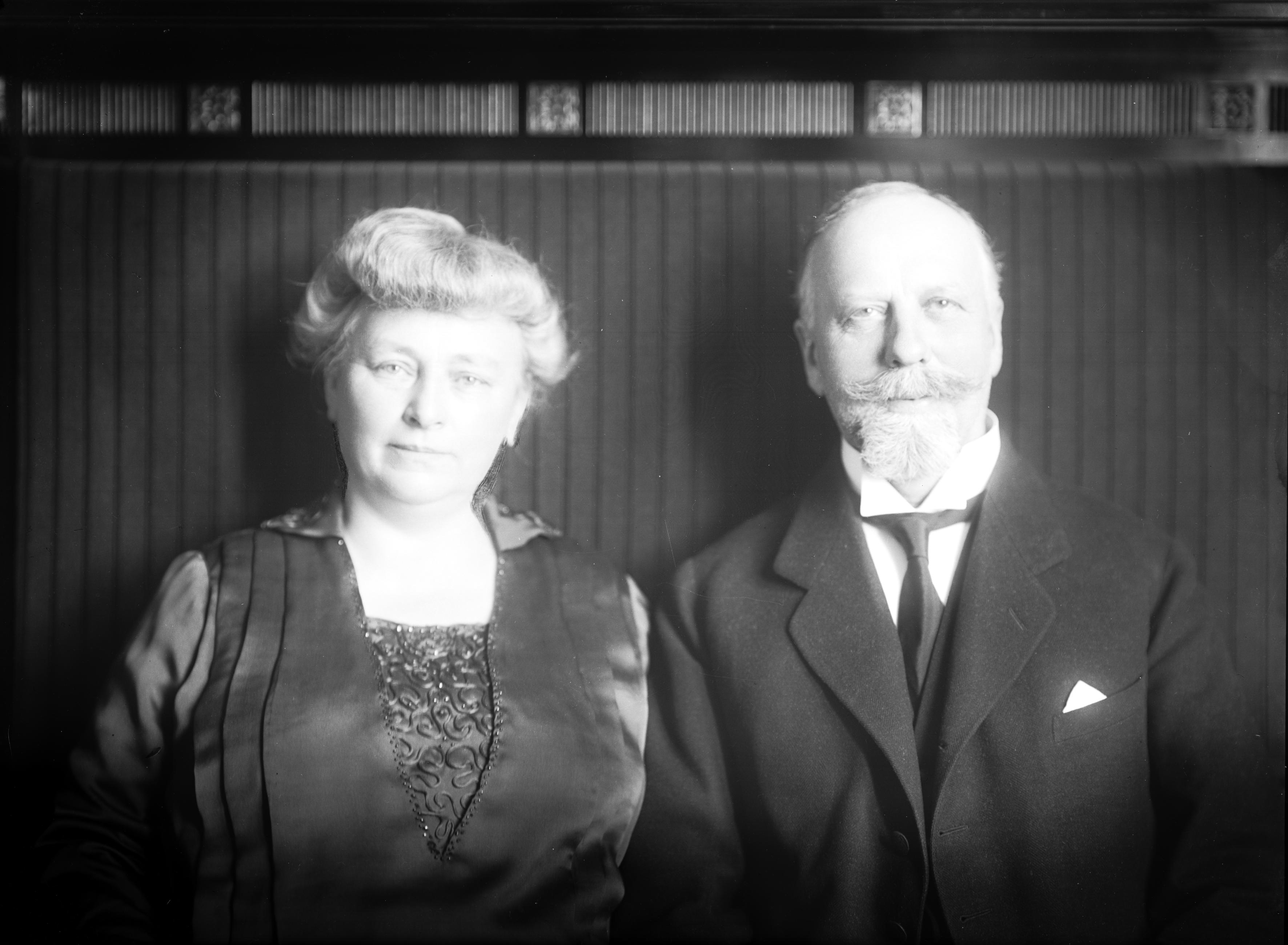 Porträtt av hattmakare, konsul Axel Berling med frun Anna i samband med Berlings 60-årsdag.