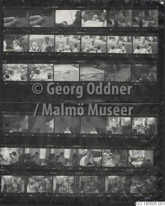 GO 195505:001 :: man, simbassäng, kvinna, barn, trädgård, trädgårdsmöbel