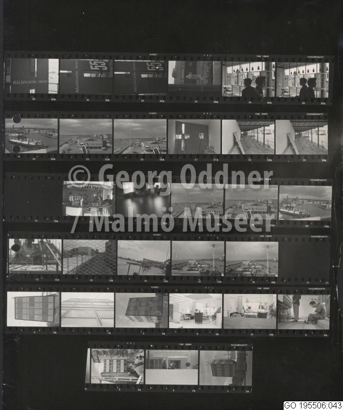 GO 195506:043 :: utställning, inredning, bar, stadsvy, hamn, fartyg, man, kvinna