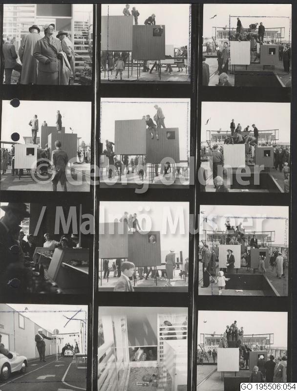 GO 195506:054 :: utställning, kvinna, man, barn, lekplats
