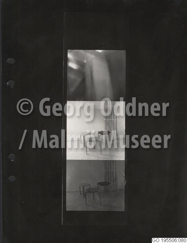 GO 195506:080 :: utställning, bostadsinteriör, inredning, pall