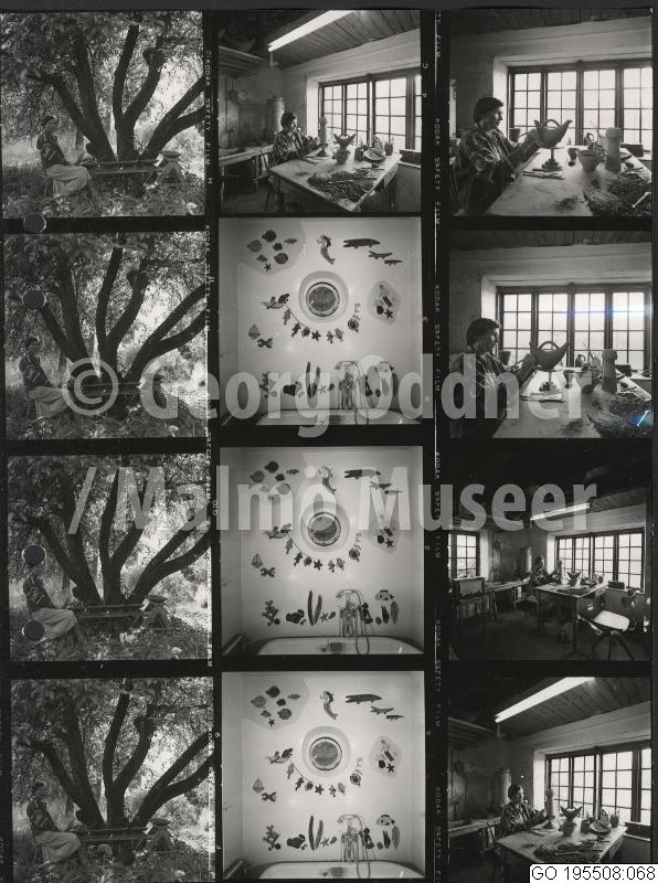 GO 195508:068 :: kvinna, bostadsinteriör, väggdekoration, trädgård