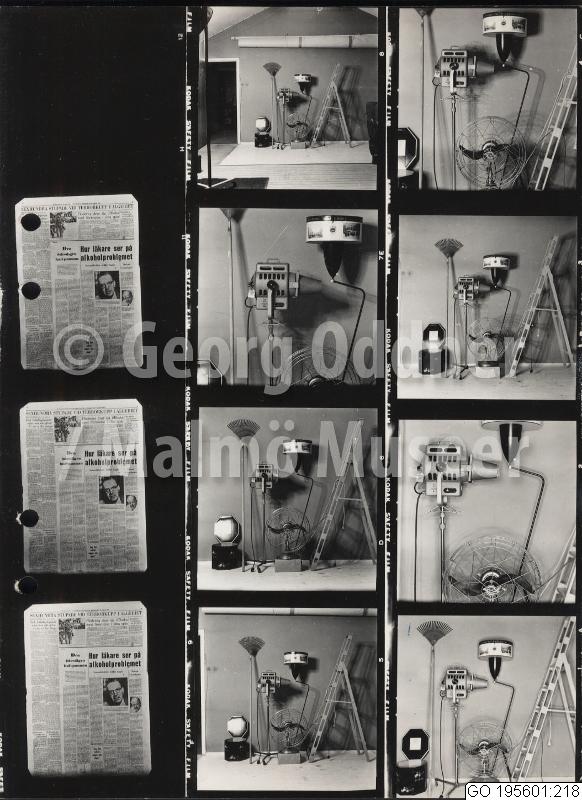 GO 195601:218 :: oidentifierbart, fotoutrustning, räfsa, stege, fläkt