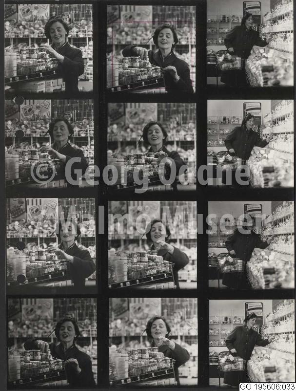 GO 195606:033 :: kvinna, livsmedelsaffär, kund, matvara