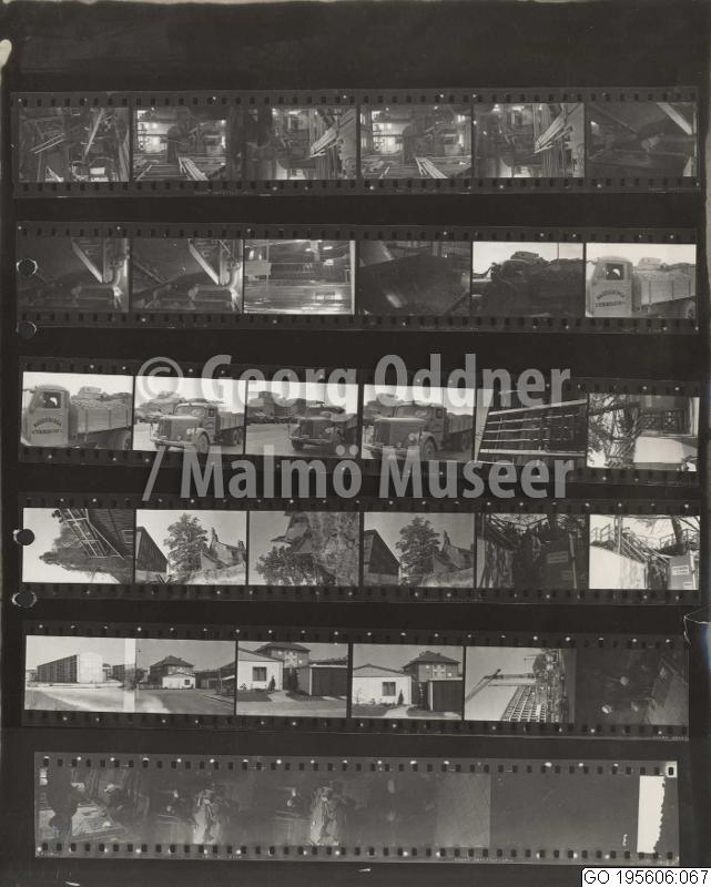 GO 195606:067 :: industribyggnad, byggnad, kontorsbyggnad, man, lastbil, lyftkran