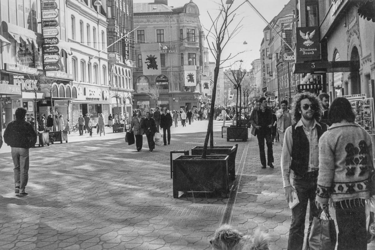 - Gatubild - Södergatan mot söder i början av 1980-talet. Gågatan anlades 1978. Längre fram korsar Baltzarsgatan/Skomakaregatan. Mannen till höger i bild med solglasögonen heter Pierre Dahlander.