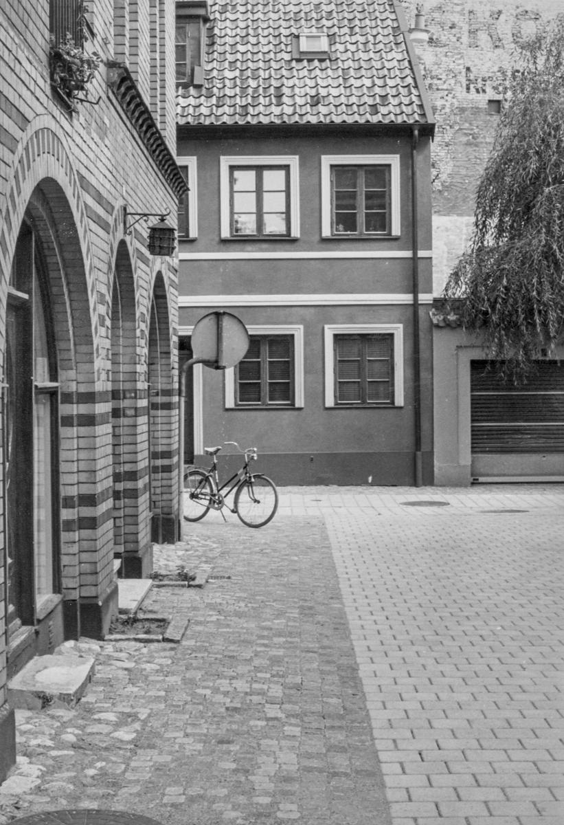 Gatubild - Agnesgatan västerut med Generalsgatan på tvärs i början på 1980-talet.