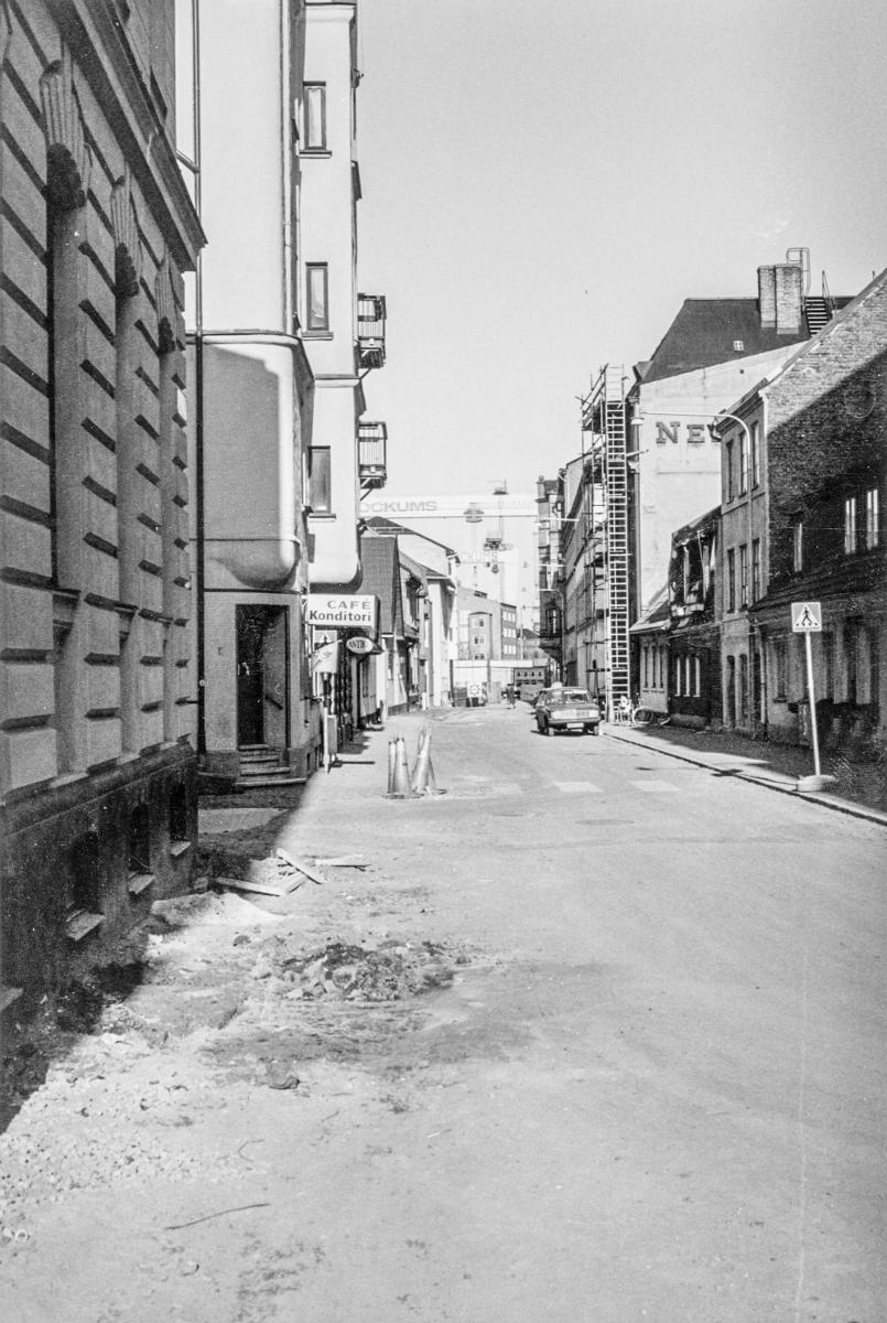 Gatubild - Långgårdsgatan norrut i början av 1980-talet. Gatan ner till vänster heter Hjorttackegatan.
