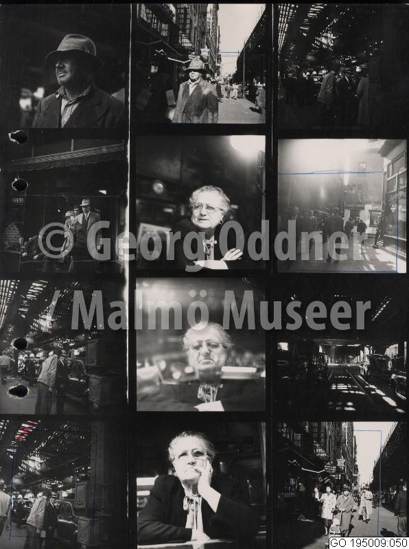 GO 195009:050 :: stadsgata, affärsgata, man, kvinna, barn, bil