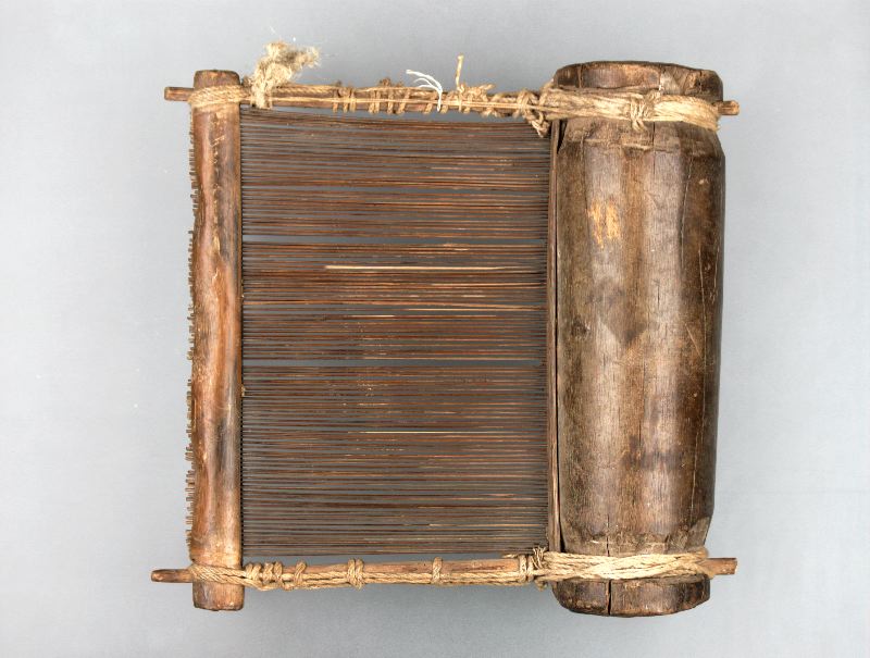 Vävskeden består av ca 14 cm långsmala pinnar vid ena änden sammanhållna