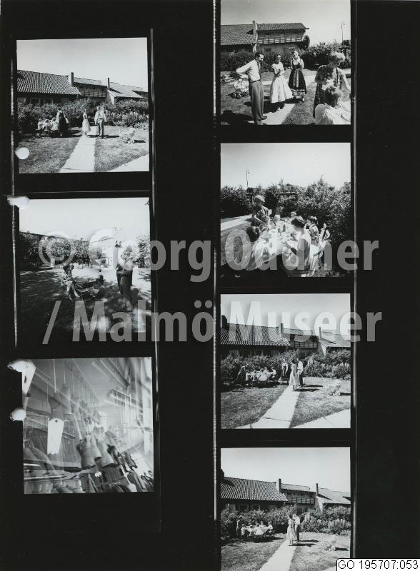 GO 195707:053 :: radhus, man, kvinna, barn, bordsdukning, folkdräkt