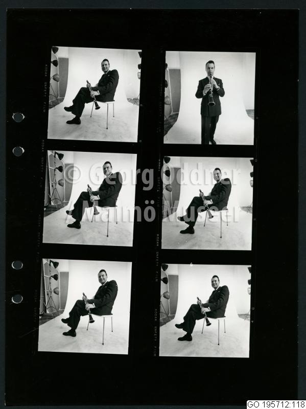Jazz. Kontaktkarta finns i jazzlådan. Putte Wickman svensk musiker och klarinettist.