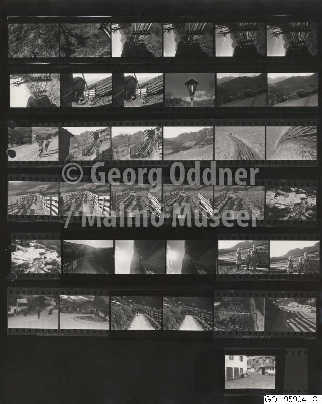 GO 195904:181 :: bybebyggelse, kvinna, barn, man, berg, väg, stig, staket