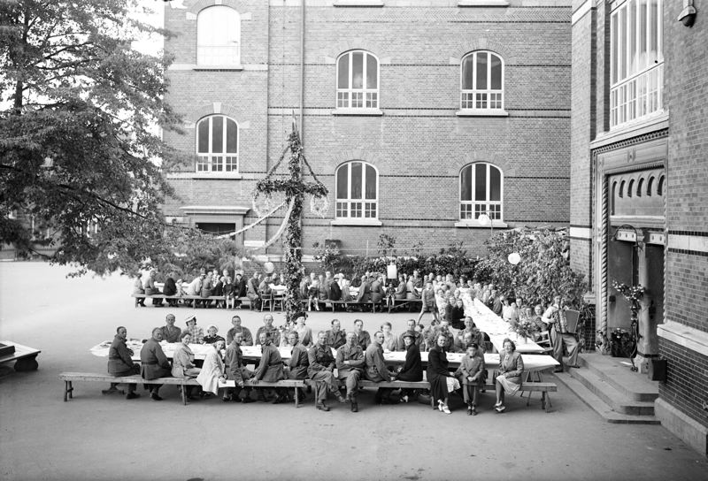 OLB 001202 :: gårdsinteriör, midsommarfirande