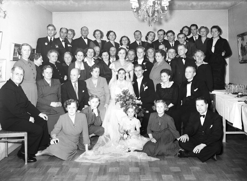 Grupp med brudpar.