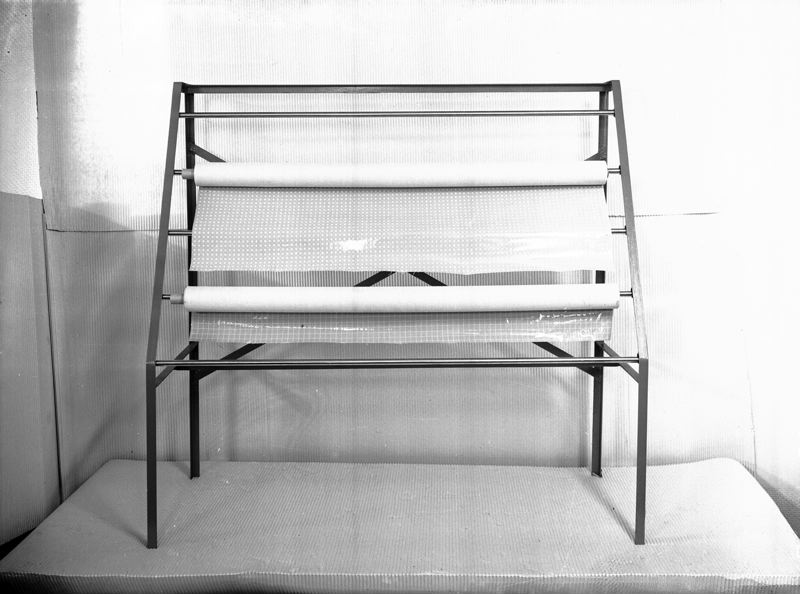 Ställ med pappersrullar. Skånska Papperscentralen, Malmö.