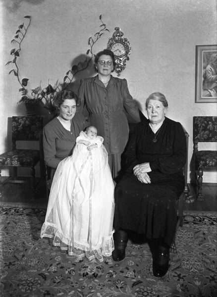 Tre kvinnor med nyfött barn.
