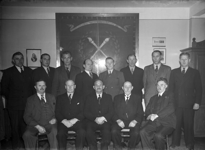 Grupp av män, int. Malmö Arbetsmannafackförening, Gruv- och fabriksavd. 8.