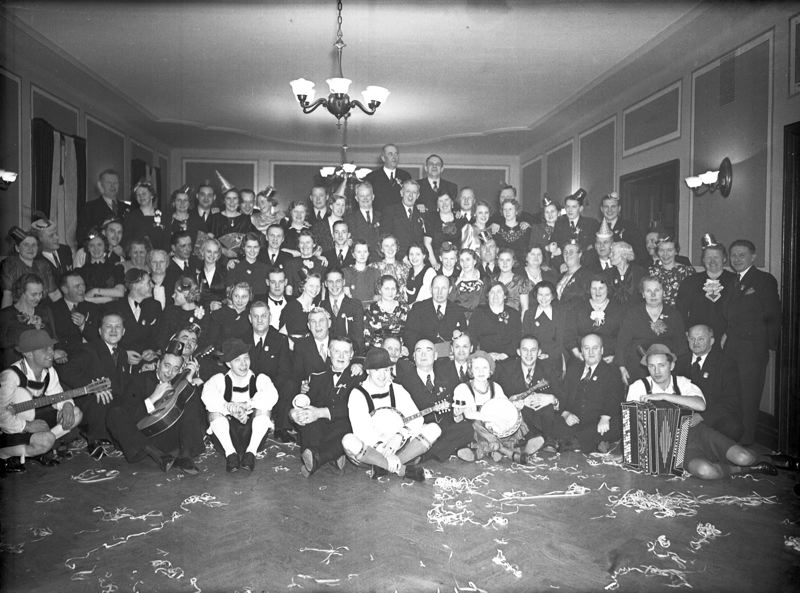 Stor grupp, festklädda. Telegrafverkets personalklubb.