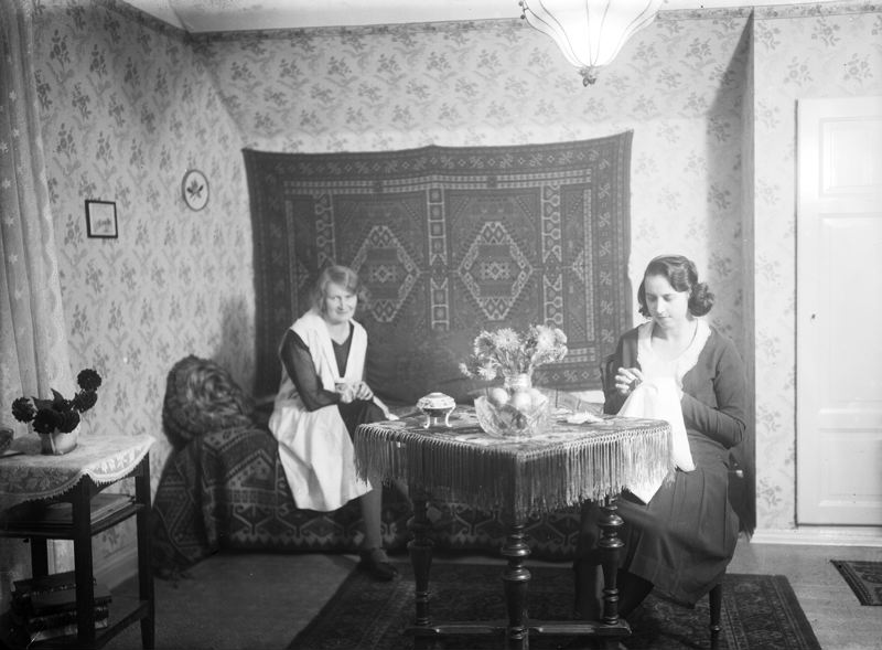 OLB 003187 :: rumsinteriör, kvinnoporträtt, broderi