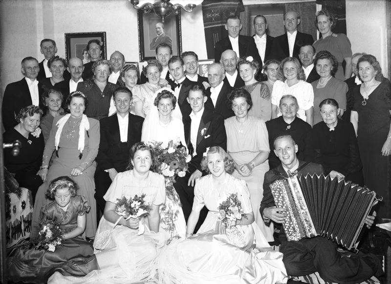 Gruppbild med brudpar.