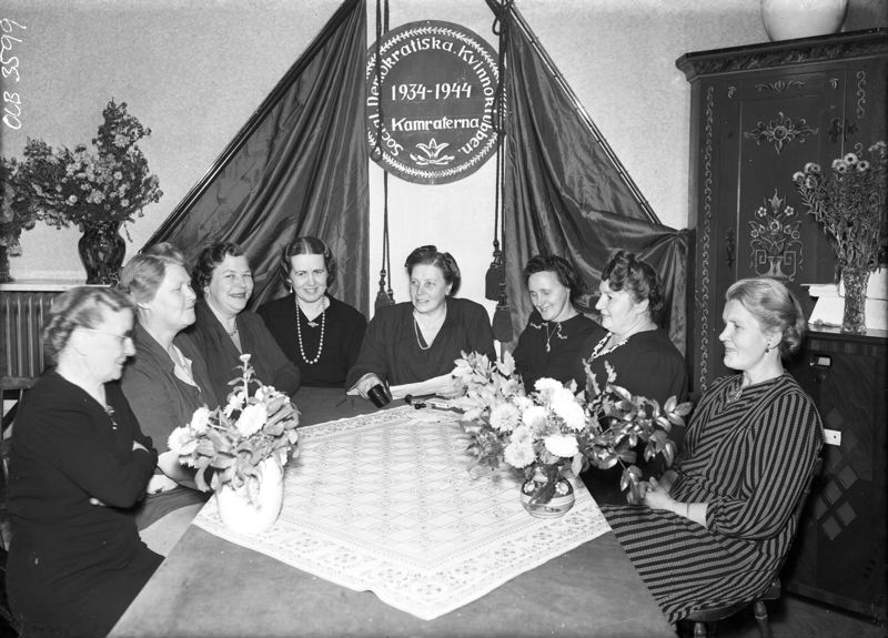 Kvinnor vid bord, fackföreningsmöte. Social demokratiska kvinnoklubben