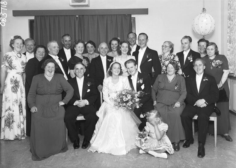 Gruppbild med brudpar.